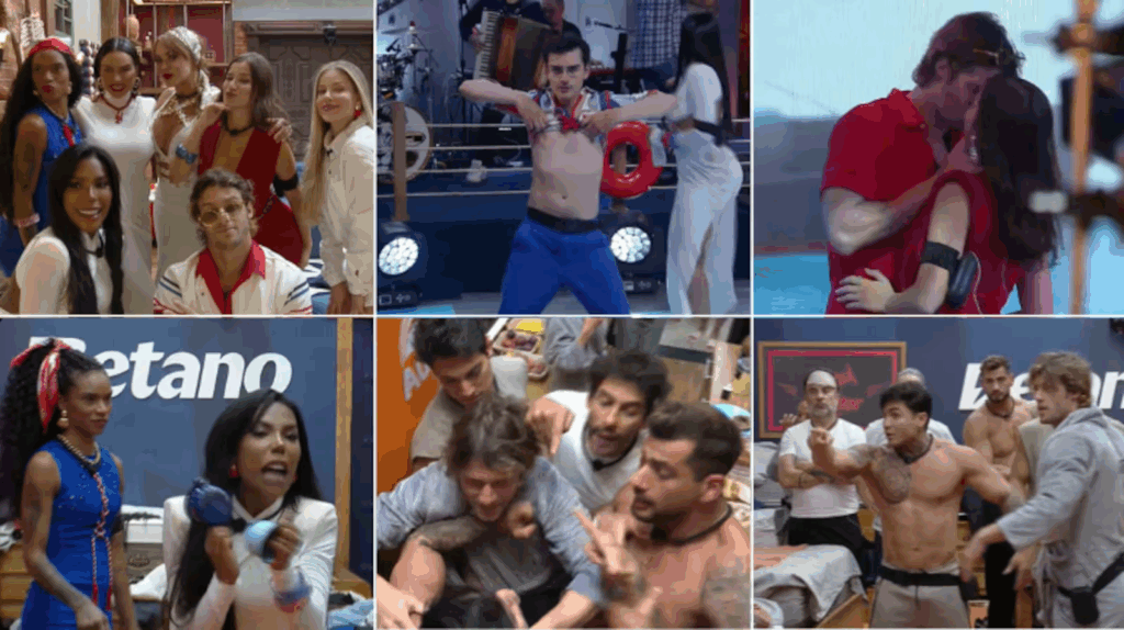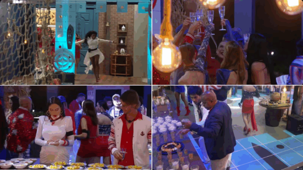 Looks temáticosTrajados no melhor visual marítimo, os peões aproveitaram a produção para registrar os looks personalizados em azul, branco e vermelho preparados pela produção do programa para cada um. Seu favorito está em nos cliques?