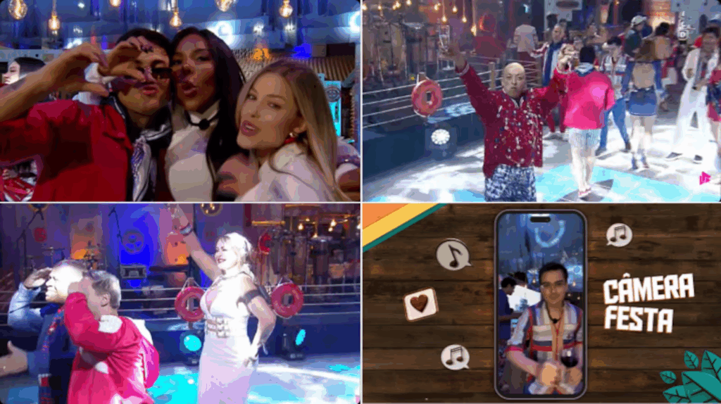 ‘Close’ de sobraA pista de dança conta com diversas câmeras espelhadas, além do celular exclusivo disponibilizado para registrar todos os momentos. Aproveitando cada clique, a peãozada deu um show de interações com as filmadoras