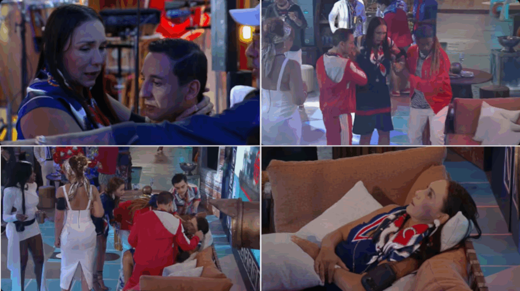 Imprevisto dolorosoLogo no início da curtição, Yoná não aguentou as dores que estava sentindo nas costas e desabou em lágrimas. Preocupados com a advogada, os peões a carregaram até o sofá, onde ela deitou para se recuperar. Segundo a peoa, a dor veio da sua participação ativa nos tratos desde o início do confinamento