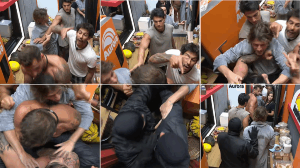 Briga de gigantesEstressados com a gritaria, alguns peões saíram do quarto e outra bomba explodiu. Enquanto Shia estava lidando com uma crise de ansiedade tentando conseguir cigarro, Wallas passou e ouviu o ator dizer que socaria dez pessoas da sede. O cantor se revoltou e partiu para cima do peão. Eles quase se agrediram e os ninjas precisaram intervir