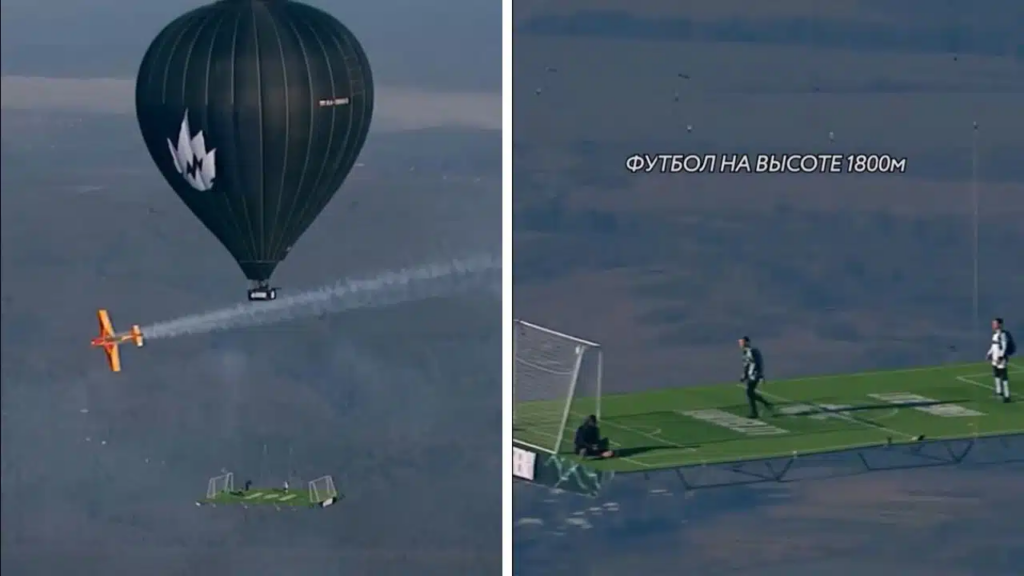 O atleta russo Sergey Boytsov estabeleceu um novo recorde incomum ao participar de uma partida de futebol realizada em uma plataforma de grama sintética suspensa sob um balão de ar quente a 1800 metros de altitude. O evento ocorreu no dia 2 de dezembro na zona rural da Rússia e foi organizado com o objetivo de registrar um feito esportivo extremo. A iniciativa contou com quatro participantes equipados com cintos de segurança para garantir estabilidade durante o jogo em altitude.